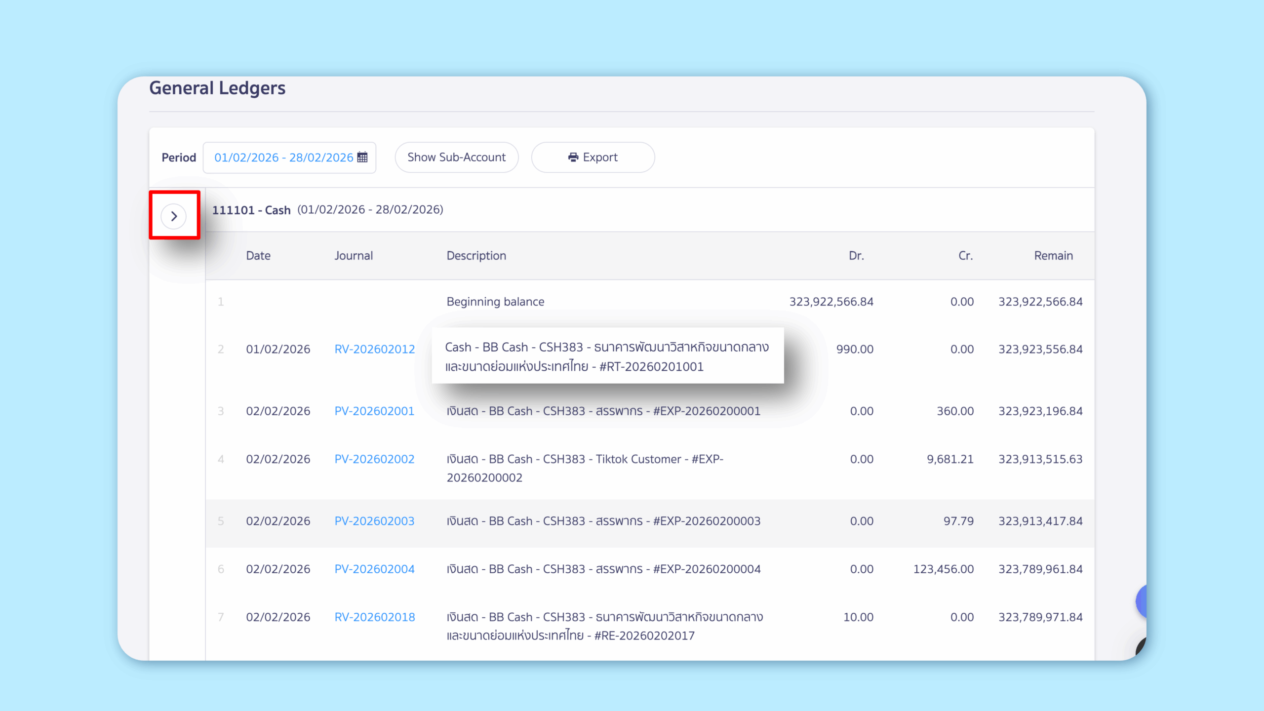 Highlight: The ledger now shows full descriptions immediately without hovering. A collapse/expand option has also been added, making entries easier to read and speeding up data checks.