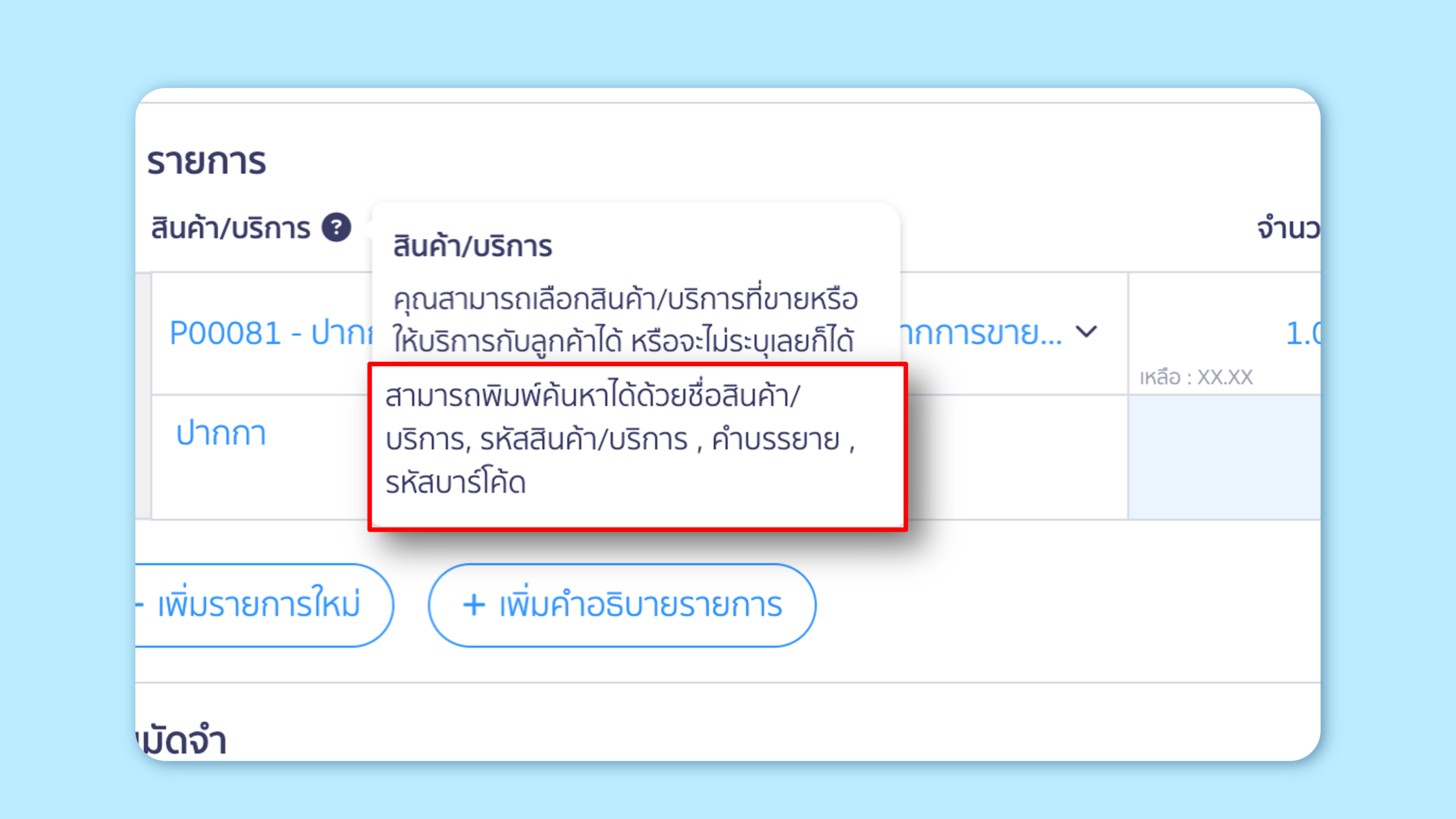 เดิม : ค้นหาได้เฉพาะชื่อสินค้า/บริการ รหัสสินค้า/บริการ และคำบรรยาย