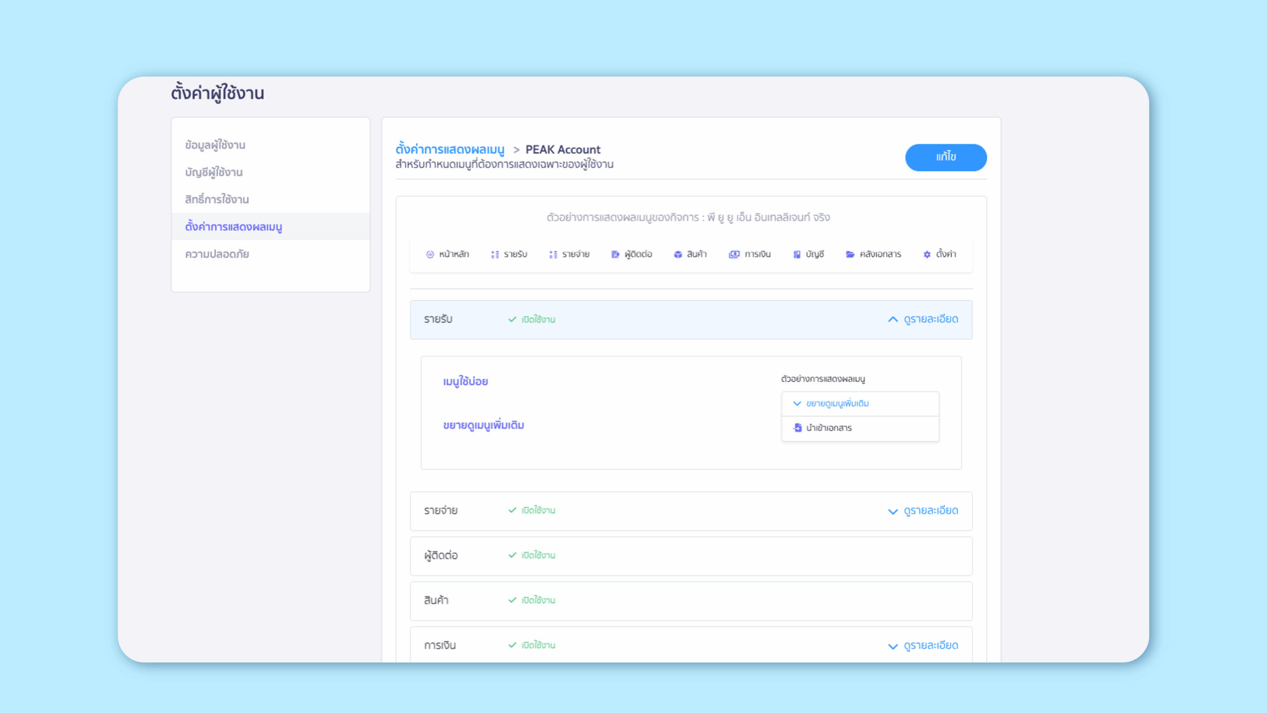 8. เพิ่มปุ่มฟันเฟืองด้านข้างเมนูตั้งค่า สำหรับการตั้งค่าการแสดงผลเมนู ช่วยให้ผู้ใช้งานสามารถตั้งค่าการแสดงผลเมนูได้สะดวกมากยิ่งขึ้น