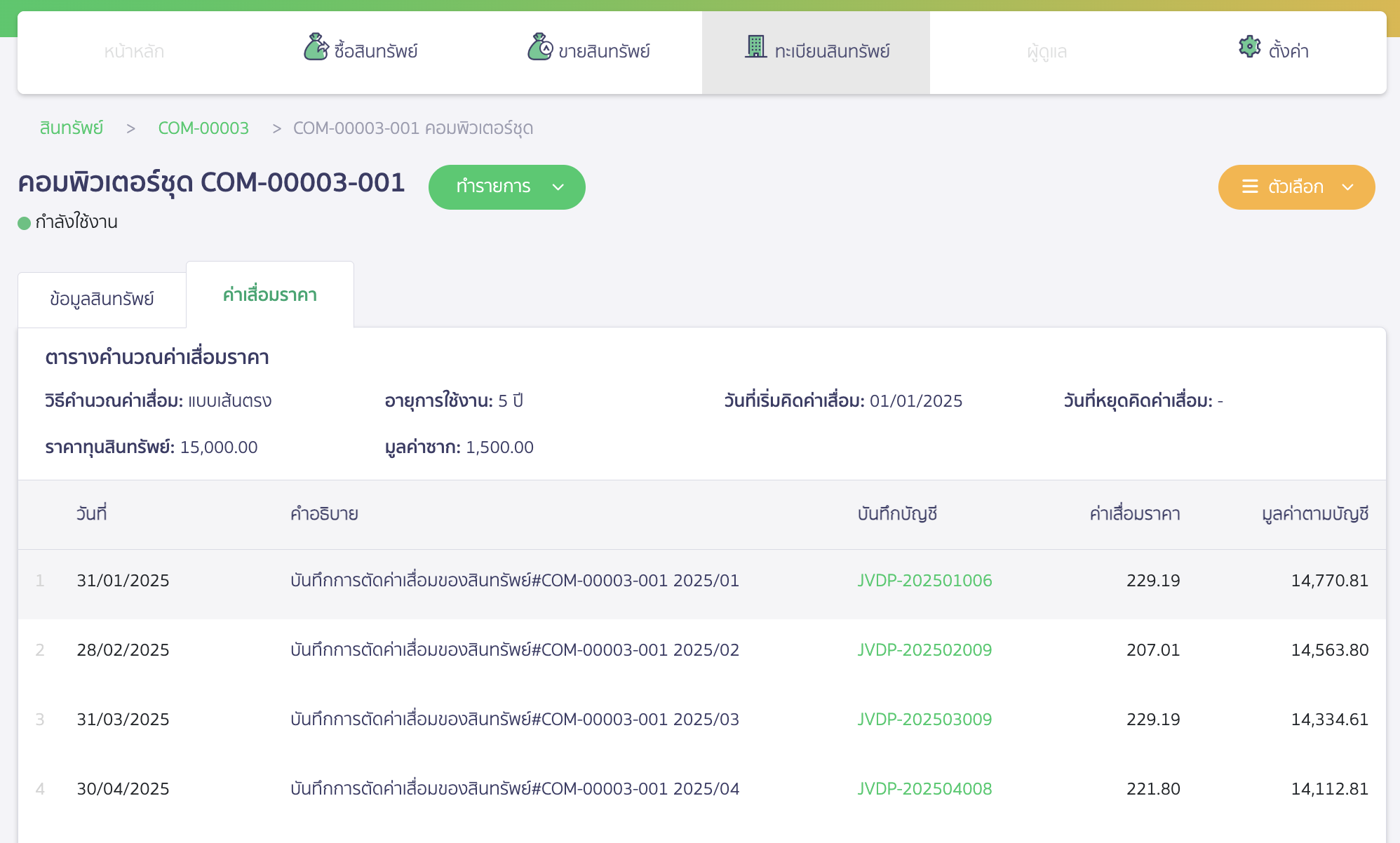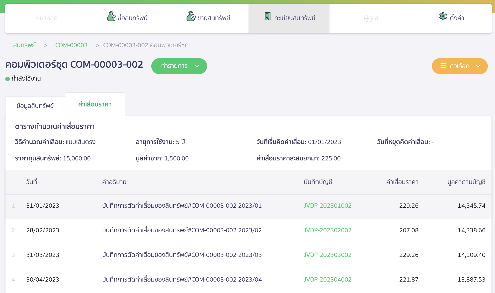 – จบขั้นตอนการวิธีคิดค่าเสื่อมราคาของสินทรัพย์ ใน PEAK Asset –