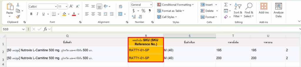 หาก เลือกเลขที่สินค้า หมายความว่า เลขที่สินค้า (รหัสสินค้าPEAK) ต้องตรงกับ sellerSku ในไฟล์นำเข้า Lazada