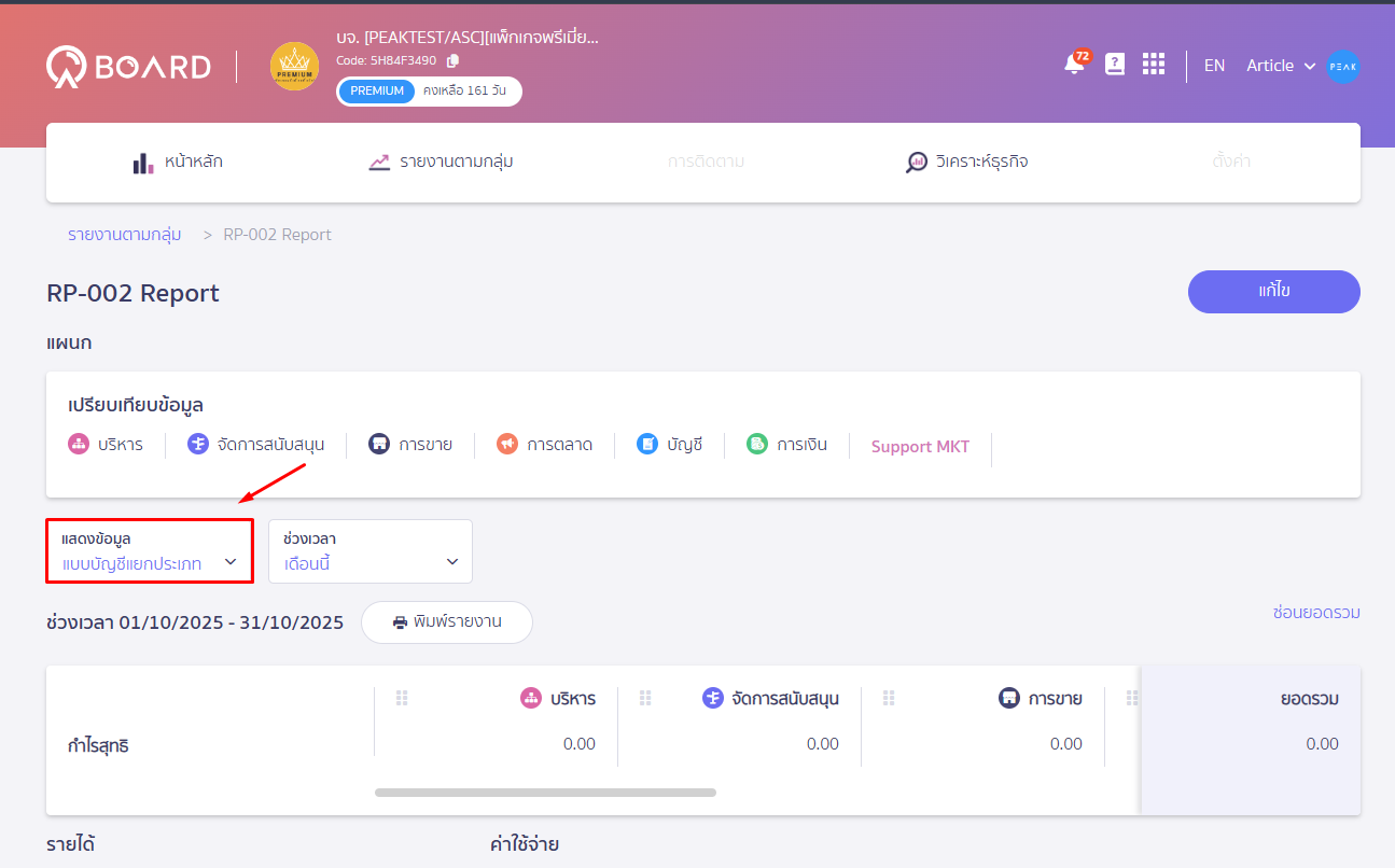 ตรวจสอบยอดกลุ่มจัดประเภท เทียบกับยอดรายได้ ใน PEAK Board