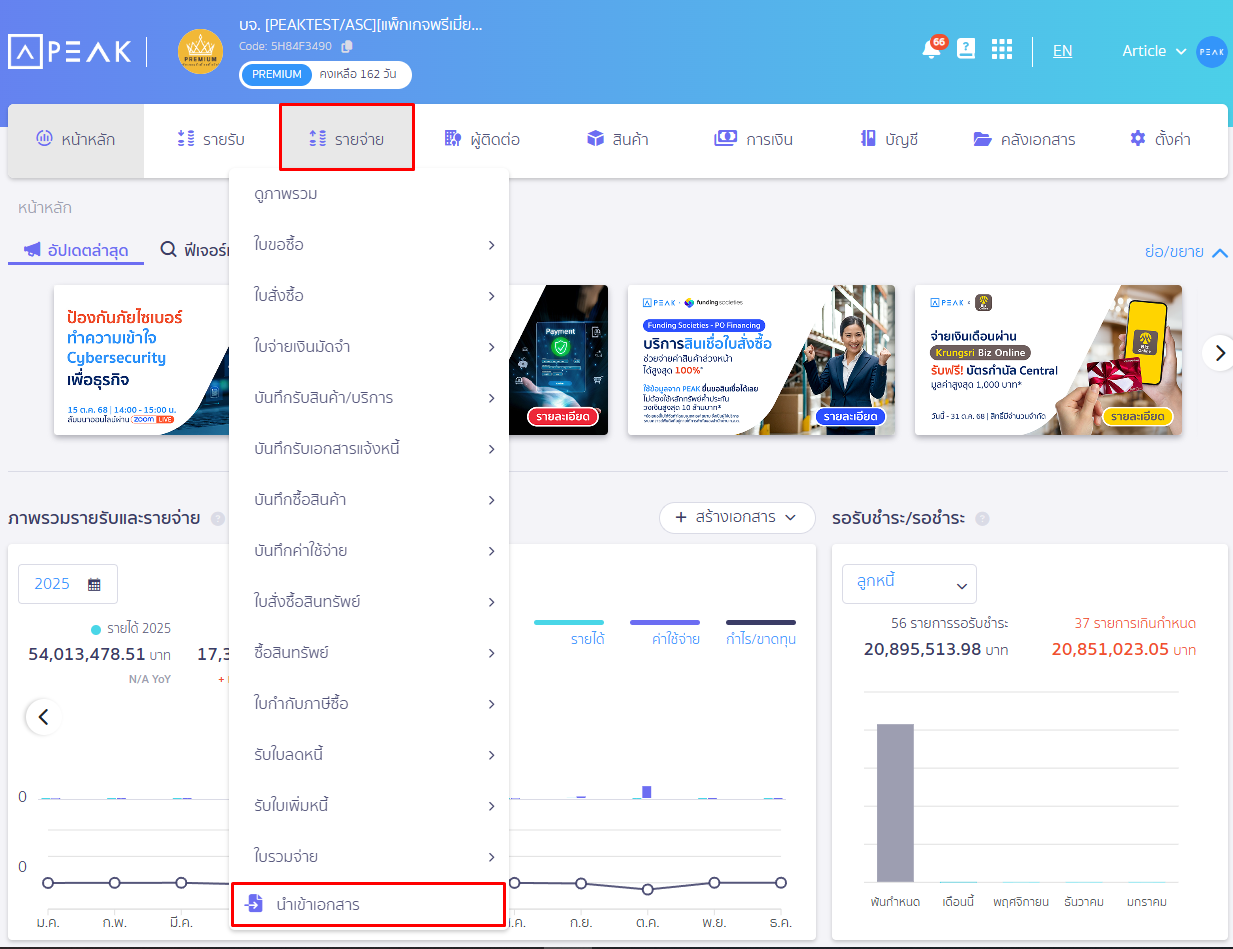 ยกเลิกเอกสารที่ Import ใน PEAK