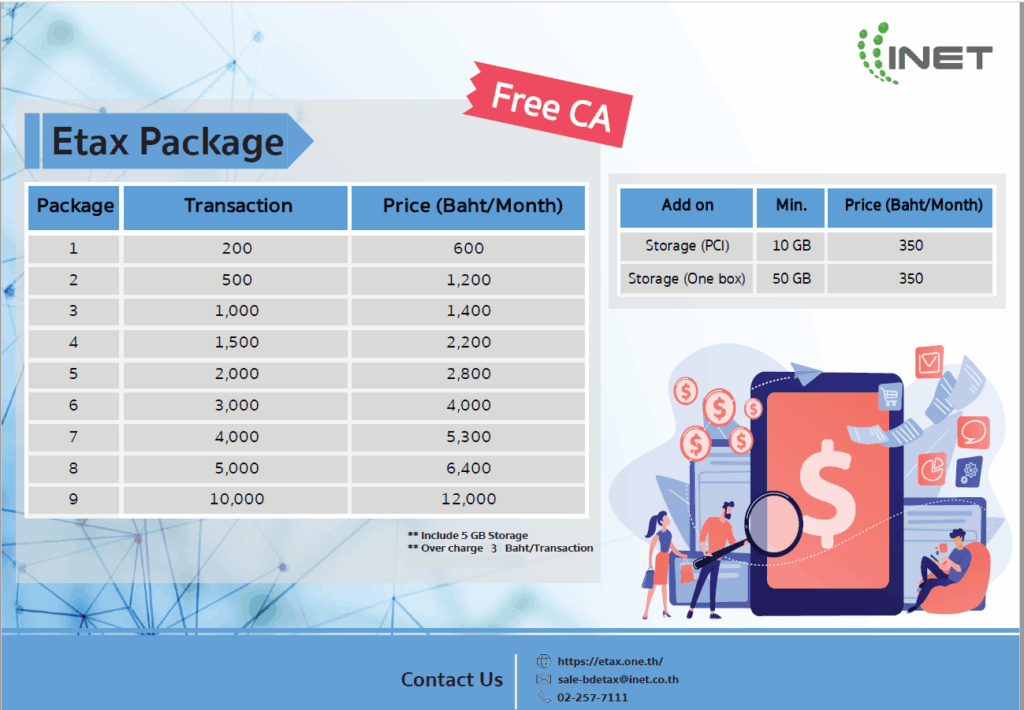 หากต้องการเชื่อมต่อ e-Tax Invoice & e-Receipt by INET มีค่าใช้จ่ายเพิ่มเติมไหม