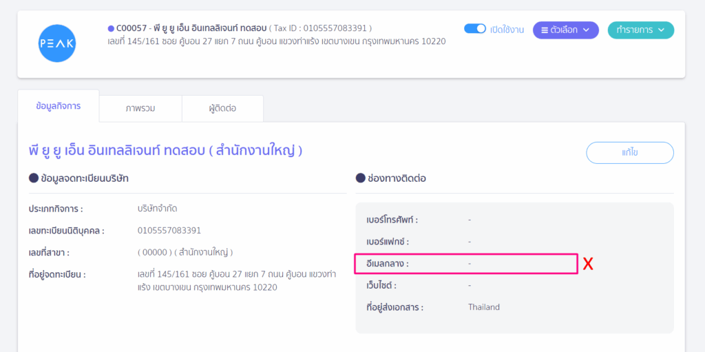 ในข้อมูลผู้ติดต่อไม่ต้องระบุอีเมลกลาง