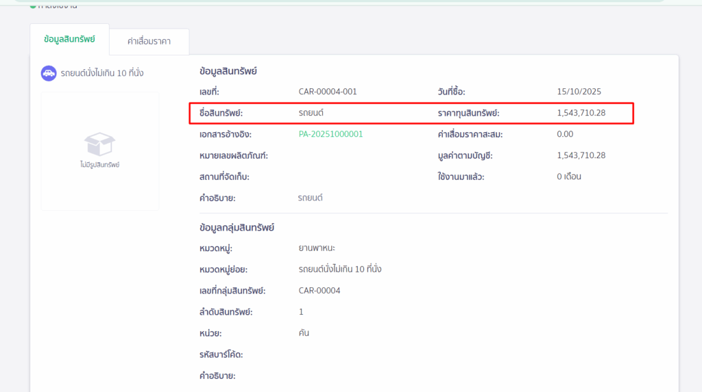 ดูคู่มือการบันทึกสินทรัพย์ยกมาได้ที่ คู่มือบันทึกสินทรัพย์ยกมา
