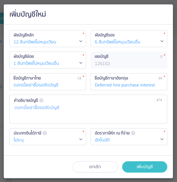 หมายเหตุ : การเพิ่มและเลือกผังบัญชีเป็นตัวอย่างเท่านั้น ทั้งนี้ขึ้นอยู่กับการวิเคราะห์และการตีความของแต่ละกิจการ สามารถดูประกอบได้