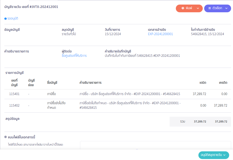 ตัวอย่างการบันทึกบัญชีภาษีซื้อของเงินดาวน์