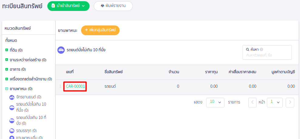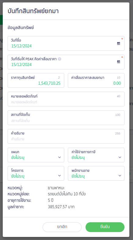 บันทึกรถยนต์เข้าทะเบียนสินทรัพย์และให้ระบบบันทึกค่าเสื่อมที่ PEAK Asset