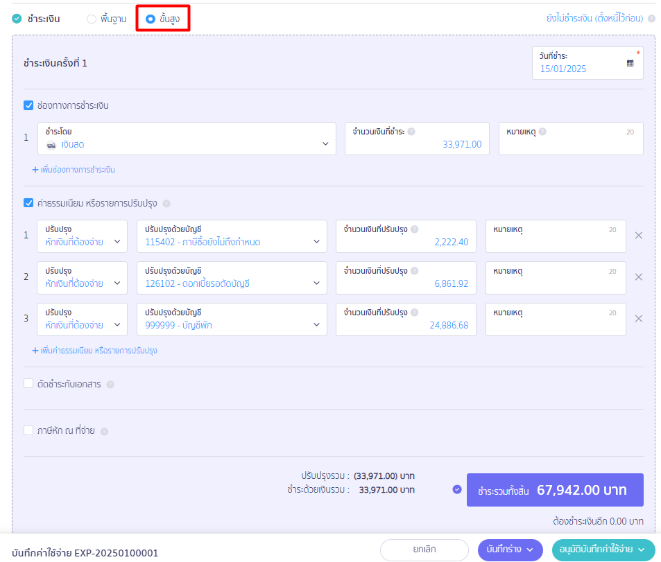 ข้อมูลการชำระเงิน ให้กดปุ่มขั้นสูง