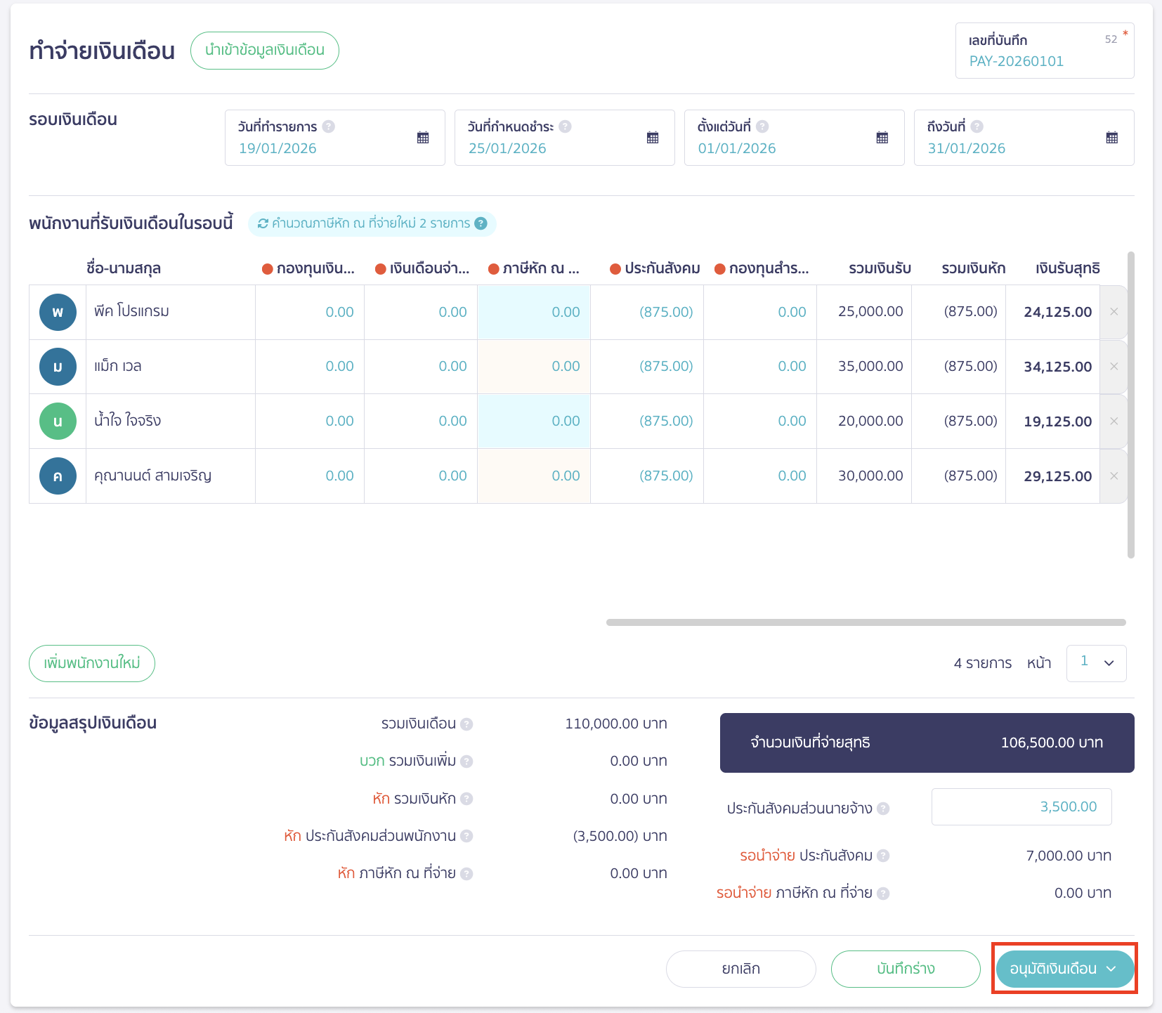 คลิกปุ่ม “อนุมัติเงินเดือน”