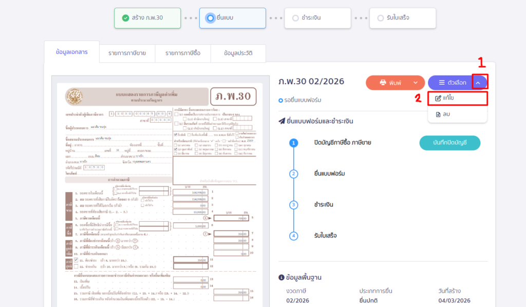 แก้ไขแบบ ภ.พ.30 ใน PEAK Tax