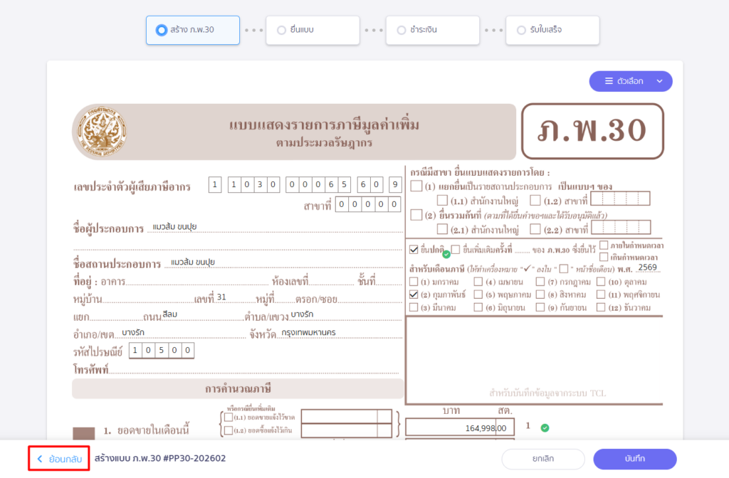 4. ระบบจะแสดงหน้าแบบ ภ.พ.30 เดิม ให้คลิก “ย้อนกลับ”