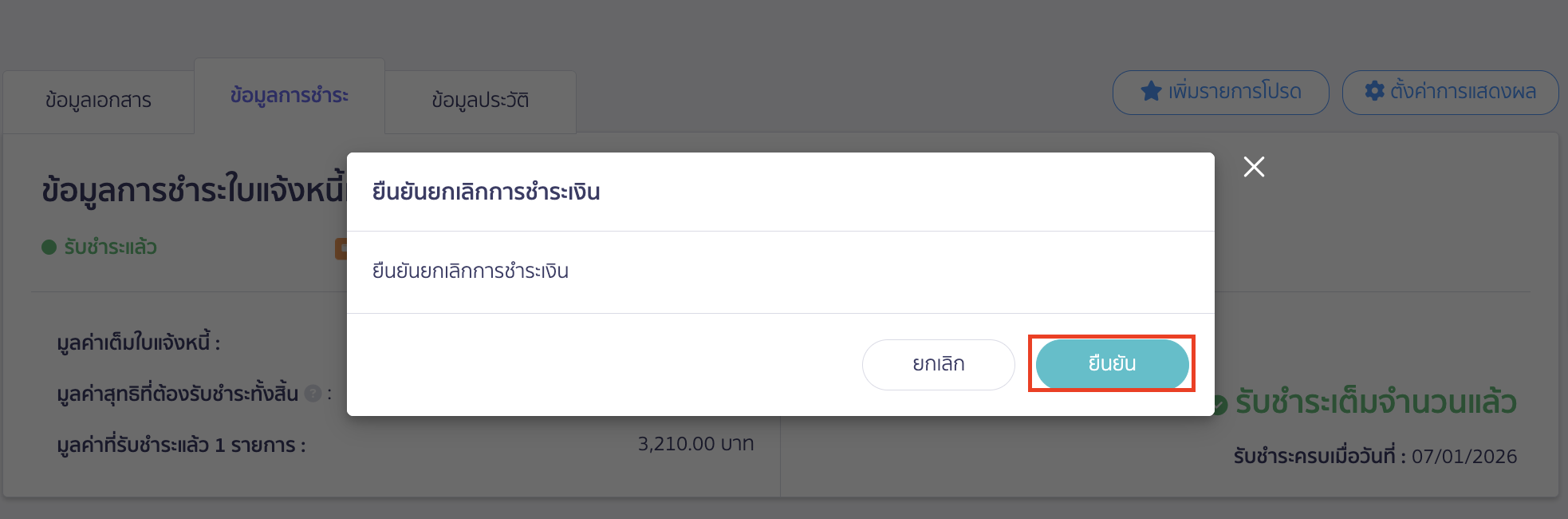 คลิกปุ่ม “ยืนยัน” เพื่อยืนยันยกเลิกการชำระเงิน