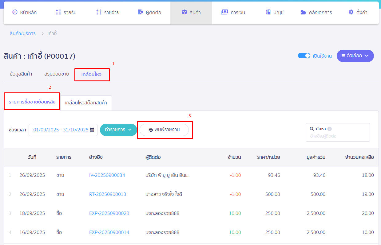 การติดตามความเคลื่อนไหวของสินค้าแต่ละรายการเป็นสิ่งจำเป็นสำหรับการบริหารสต็อกและการวางแผนการขาย การ พิมพ์รายการเคลื่อนไหวสินค้ารายตัว จะช่วยให้คุณเห็นประวัติการซื้อ-ขายของสินค้านั้นๆ ได้อย่างละเอียด ทำให้สามารถวิเคราะห์แนวโน้มและจัดการสินค้าคงคลังได้อย่างมีประสิทธิภาพ วิธีการดูและพิมพ์รายงานเคลื่อนไหวสต็อกสินค้าเพื่อดูรายการซื้อ-ขาย สามารถทำได้ตามขั้นตอนดังนี้