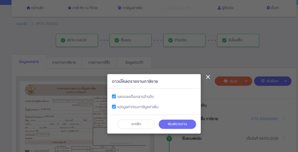 กดที่เลขที่แบบ ภ.พ.30 ที่ต้องการพิมพ์รายงานภาษีขาย/ภาษีซื้อ